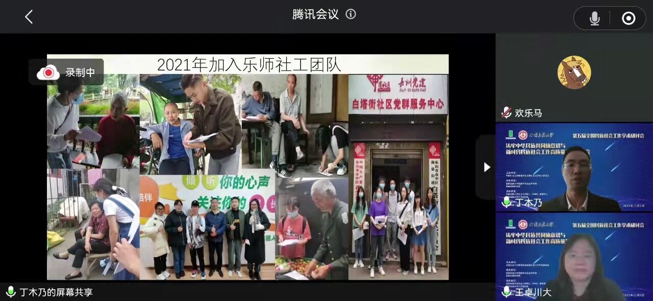 本网讯(文、图/张洁)2022年11月5日,由中国社会工作教育协会民族社会工作专业委员会主办,西南民族大学民族学与社会学院、西南民族研究院承办的第五届全国民族社会工作学术研讨会在成都顺利召开。本次大会围绕“铸牢中华民族共同体意识与新时代民族社会工作高质量发展”主题展开研讨,来自全国四十多所高校、研究机构近百位专家学者、博士生和硕士生参加了线上会议。