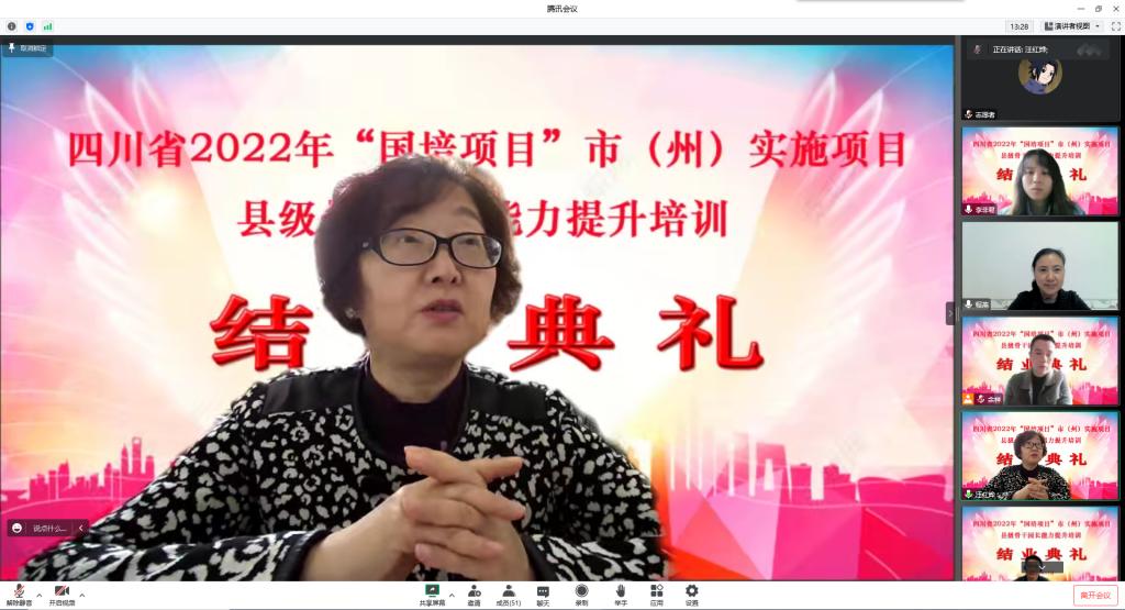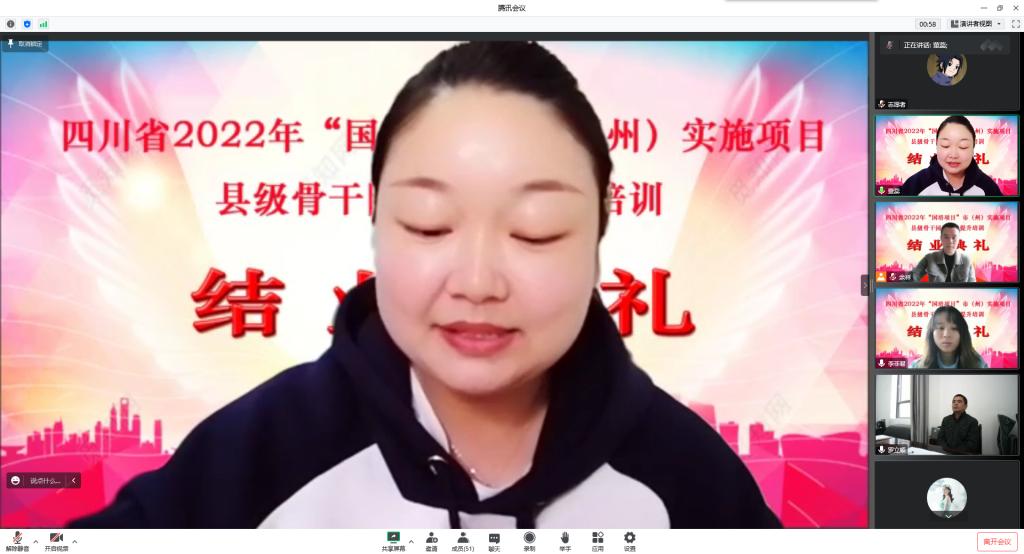 本网讯(文、图/余祥)11月9日上午,由世界杯葡萄牙vs加纳波胆预测 教育科学学院承办的“国培计划(2022)—县级骨干园长能力提升培训”线上结业典礼顺利举行。世界杯葡萄牙vs加纳波胆预测 教育科学学院院长、国培项目首席专家汪红烨、党委书记罗立顺、党委副书记兼纪委书记何晓军、副院长徐世鼎、副院长唐前军、学前教育系主任余祥、学前教育系副主任李非易、实验设备科科长赵增华和来自乐山市的40名非乡村振兴重点县乡镇公办园园长参加了此次结业典礼,此次典礼由徐世鼎主持。