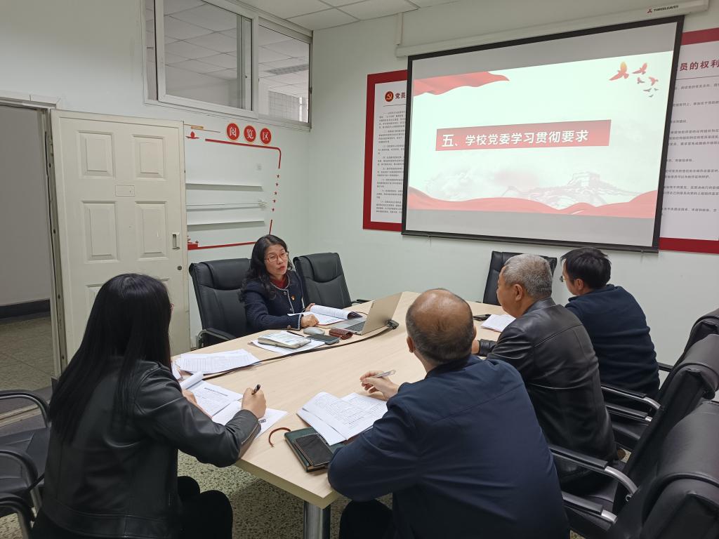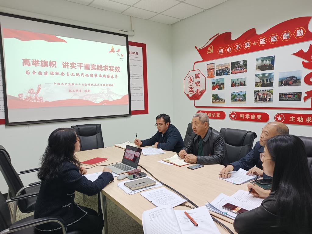 本网讯(文/杨锐、图/蒲仕江)11月14日下午,机关党委在弘毅楼309机关党员活动室召开党委会。机关党委书记刘馨在会上专题解读中国共产党第二十次全国代表大会精神。巡察办党支部全体成员参加了学习。
