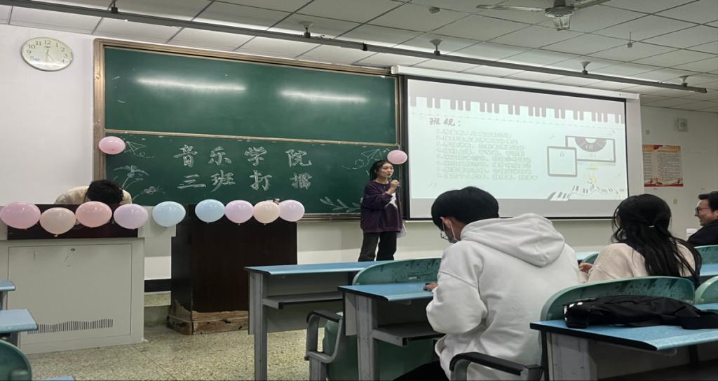 本网讯(文/戴伶函 图/韩笑)11月12日,音乐学院在行知楼125教室举办三班打擂活动。音乐学院党委书记罗谊恒、音乐学院分团委书记郭元红、专任教师周晨、音乐学院学生干部、代班和22级全体学生参与此次活动。