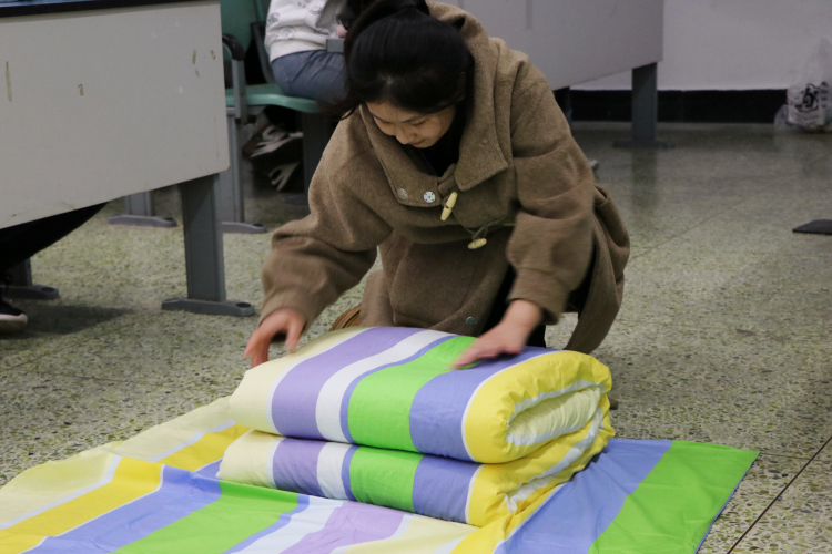 本网讯(文/徐雨梦 图/杜湘)为提升2022级新生的内务整理水平,打造良好宿舍环境和培养优秀生活习惯,11月14日晚,特殊教育学院、康复学院学生分会生活部在行知楼125教室举办了2022级新生叠军被大赛。参加本次比赛的评委有军训教官李旭旻、秦启鸿、黄桂萍、刘玲鑫、彭俊,分团委副书记杨欣悦,学生分会主席张佳玲,青年传媒中心主任范阳。22级辅导员李红和19级辅导员陈新凯作为嘉宾出席本次比赛。