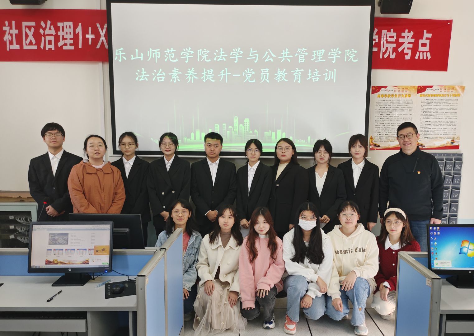 本网讯(文/刘佳佳 图/胡翔文)为提升党员师生的法治素养,加强学生党员教育培训,法学与公共管理学院于11月17日下午4点在实训楼A502开展了法治素养提升党员教育培训活动。法管学院辅导员刘佳佳,外国语学院辅导员曾云超及部分法管学院和外国语学院学生党员共同参与此次活动。