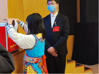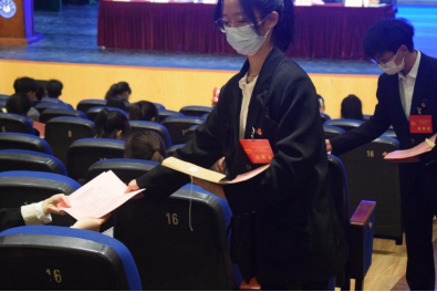 正式会议由王东健主持。经济管理学院分团委副书记陈家栩、学生分会代理主席张韶华、新闻传媒中心代理主任何美兰分别进行了汇报,他们回顾并对过往工作做了总结,对未来的工作做出了初步的计划和安排。接着,学生干部代表将选举办法提交大会审议并公布总监票员、监票员、总计票员、计票员名单。由每位学生代表选举经济管理学院团学代会、学生分会选举第三届委员会委员。之后,丁敏娜发表了讲话,她表示在两个百年交替之际,新的历史起点上,这次会议具有重要的意义。因此她向大家提出了四点要求,鼓励大家要善于学习,勤于工作,乐于服务,团结合作。丁敏娜书记也对同学们寄予了三点希望,首先,她希望同学们能够正视自我身份,纠正自我心态,发挥示范作用,要号召全体同学跟党走,把为同学服务放在第一位。其次,她从青年人应当奋斗的方面出发,强调同学们要树立理想和奋斗目标,争做有理想,敢担当,能吃苦,肯奋斗的时代青年。增强思想意识的同时,她也希望同学们能够加强锻炼,提高自我身体素质,使自己更好的参与到学习与工作中,并做好每一项工作。希望大家从“心”出发。最后全体代表再次起立奏唱共青团团歌,经济管理学院第三届第五次团员、学生代表大会就此圆满落下帷幕。