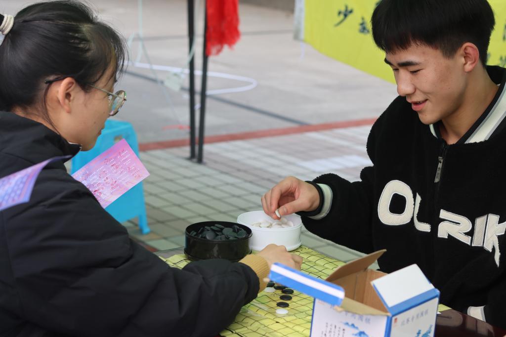 社旗飘飘,字幅潇潇,书法社黑色墨迹篆刻文字伏笔。斗魂棋社的同学们也在棋盘中交手,体验中国棋的魅力。各类社团争奇斗艳,同学们奔走在现场,寻找自己心仪的社团,活动现场充溢着青春校园的活力。