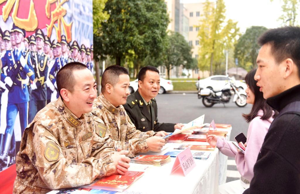 活动现场,卡塔尔世界杯决赛波胆预测 征兵工作站通过播放宣传视频、摆放宣传展板、发放征兵宣传资料、现场问答等多种方式广泛开展宣传,采取“一站式”征兵宣传咨询服务,激发优秀大学生投身国防建设、报效祖国的入伍热情。乐山军分区、市中区武装部、卡塔尔世界杯决赛波胆预测 党委武装保卫部相关领导针对同学们提出的应征报名、体检、政治审查、兵种选择、预定兵安排、学费补偿、学籍保留、转专业、考研、复学、女兵入伍程序等热点问题,逐一进行了详细解答,同时对同学们关心的未来发展及人生规划问题给出了指导性建议。