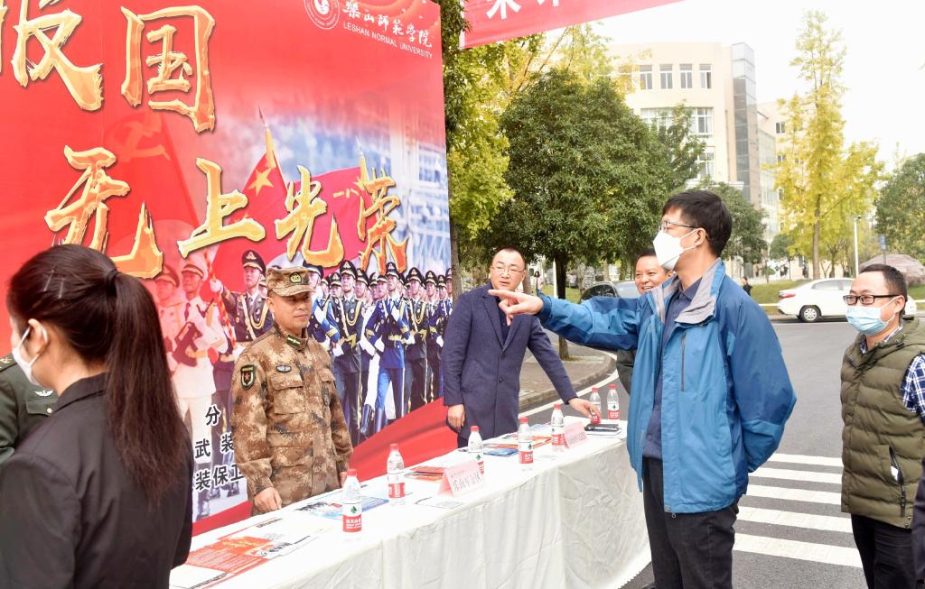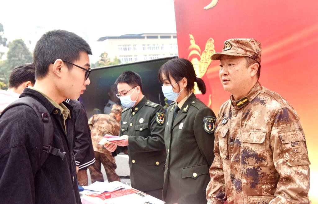 本网讯(文/杜颖 图/徐凌云)11月18日,卡塔尔世界杯决赛波胆预测 2023年春季征兵宣传活动在北校区桂花广场举行。我校党委常委、副校长李朝晖、乐山军分区参谋廖博、市中区武装部部长何辉莅临指导,卡塔尔世界杯决赛波胆预测 党委武装保卫部部长贾洪鉴、副部长梁光德,卡塔尔世界杯决赛波胆预测 征兵工作站武装干部和优秀退伍大学生代表参加了此次征兵宣传活动。