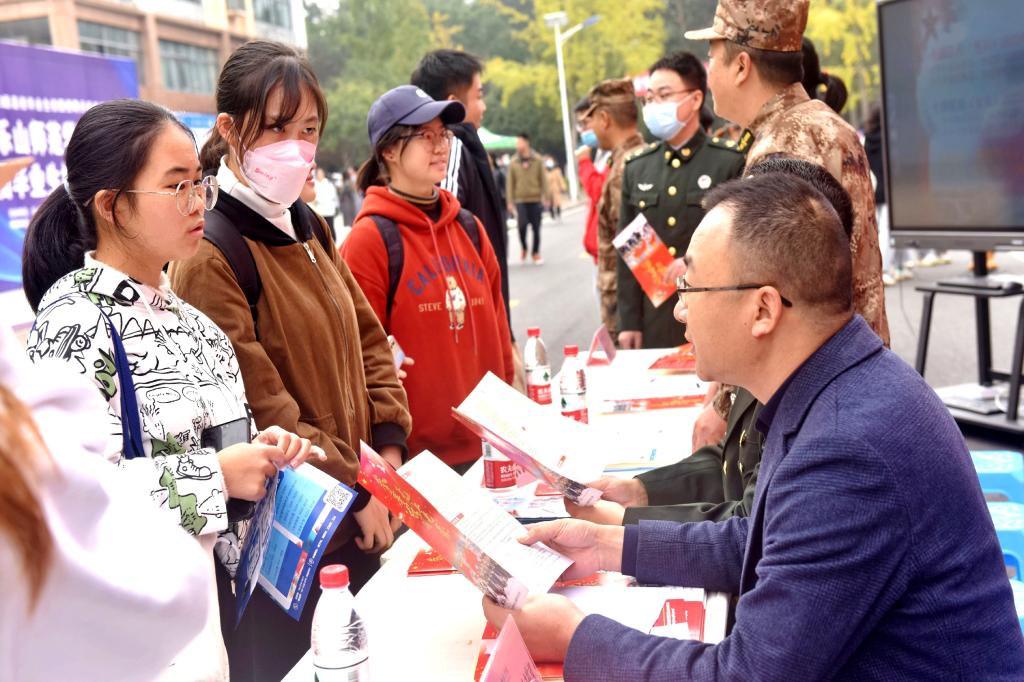 此次“双选会”征兵宣传活动发放征兵宣传资料1000余份,先后吸引了300余名大学生前来询问,现场登记有参军入伍意愿大学生189名。