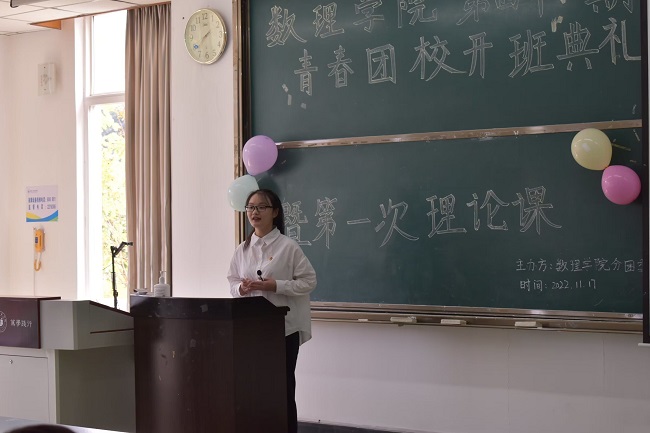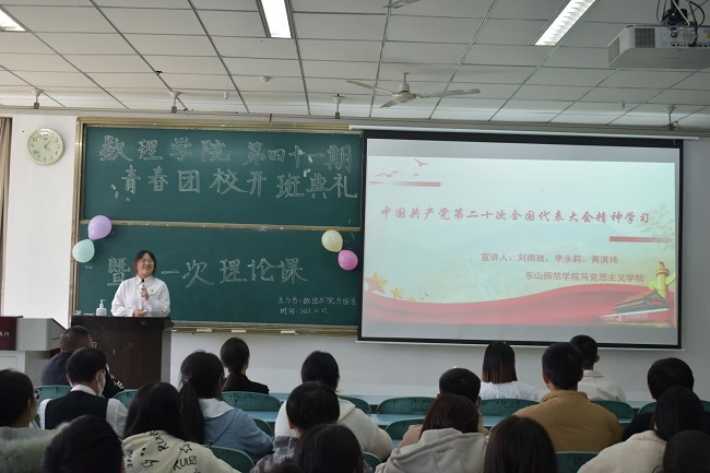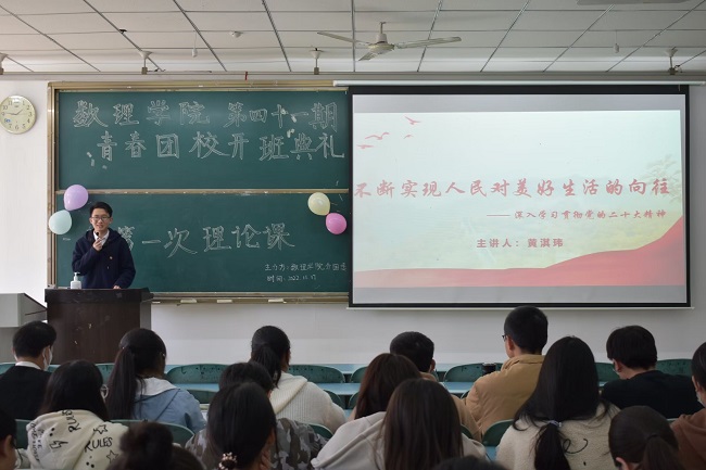 本网讯(文/曹雨彤 段纬晨 图/李晨 宋可煜)11月17日,马克思主义学院“青年说”理论宣讲团于行知楼101教室面向数理学院115名青春团校学员开展“聚焦二十大”会议精神宣讲活动。此次宣讲由马克思主义学院“青年说”大学生理论宣讲团成员刘雨玫、李永莉、黄淇玮主讲。
