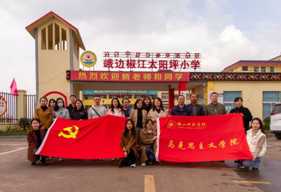 本网讯(图文/董小玲 苏洋)为深入学习党的二十大报告精神,确保二十大精神落地生根,并在实践中践行,11月17日,党委宣传部、统战部党支部党员7人与马克思主义学院党委书记李涛同志率领的教工第一党支部党员10人、“乐师红帆”青年大学生理论宣讲团3人,联合峨边县教育局、茗新村党支部和当地群众一同开展特色党日活动干部群众共话党的二十大精神。