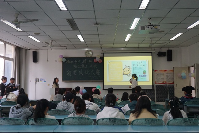 本网讯(文/郑婷 图/张玉凤)为提升寝室文化品味,旅游与地理科学学院于11月20日举办了寝室美化大赛,大赛由学生分会主席徐莎莎等学生干部担任评委。