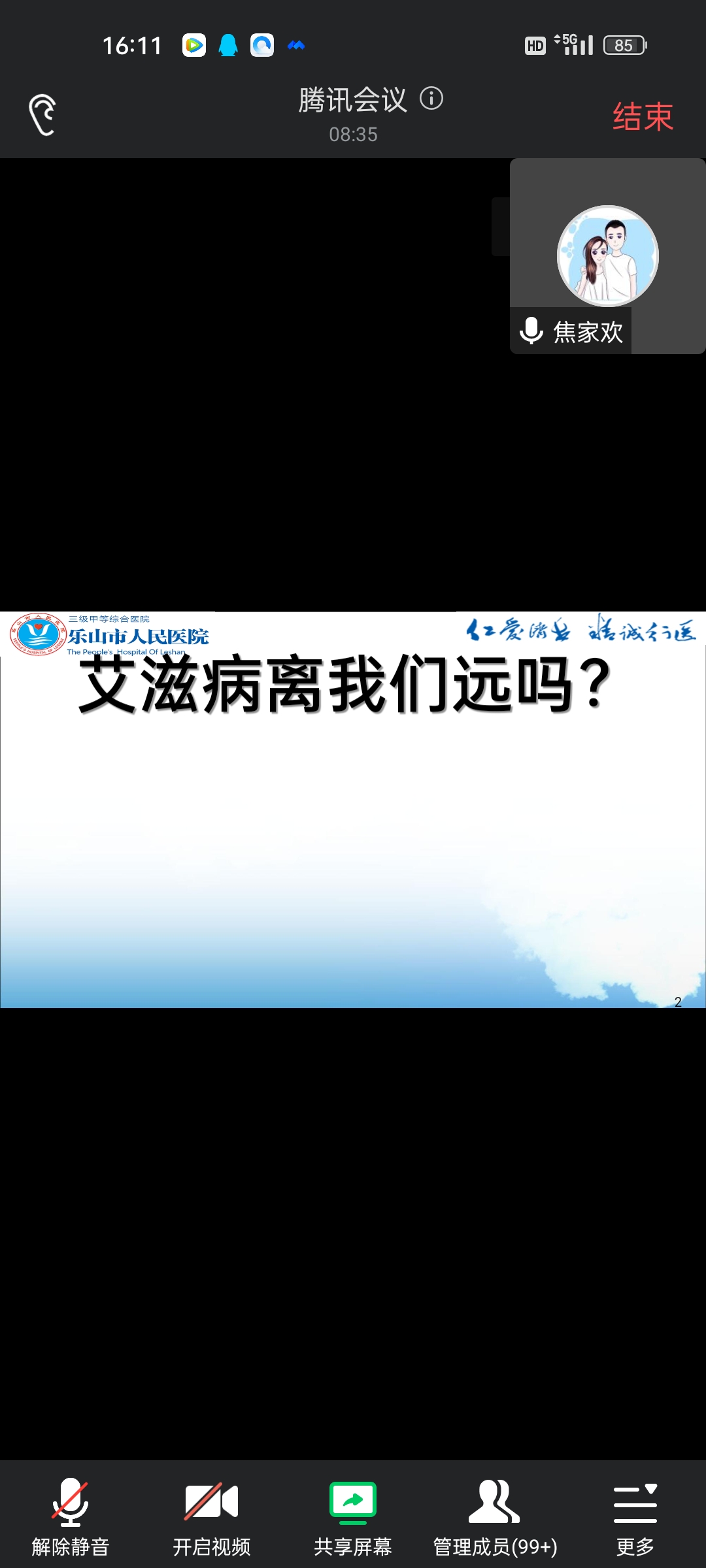 本网讯(文/杨兵 图/朱思宇)为进一步加强防艾宣传,创设良好育人环境,增强学生对于艾滋病的安全意识,法学与公共管理学院于2022年11月23日开展主题为“关爱生命,远离艾滋”的线上讲座活动。本次活动由乐山市人民医院感染科主治医师焦佳欢主讲,法管学院学生管理科科长、22级辅导员杨兵以及22级全体新生参与此次活动。