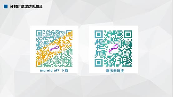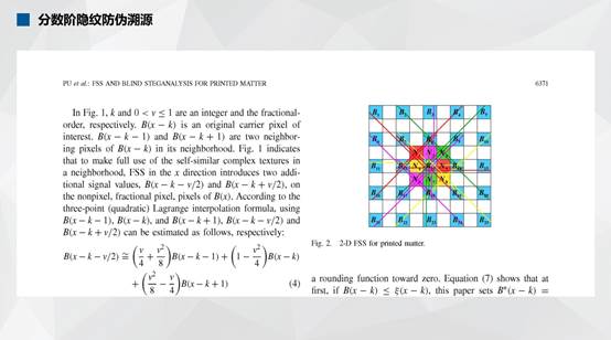 蒲亦非教授通过分数阶微分技术,提出了分数阶隐纹防伪溯源技术,该技术具有以下特点:1.嵌入的纸质文件中的隐纹信息肉眼看不见,光学不可见。2.使用专用分数阶图像处理算法提取(手机APP)即可看见隐纹信息。3.复印/复制纸质文件,隐纹信息即丢失,抗复制。4.普通打印机、普通打印纸、普通打印墨水即可打印等特点。