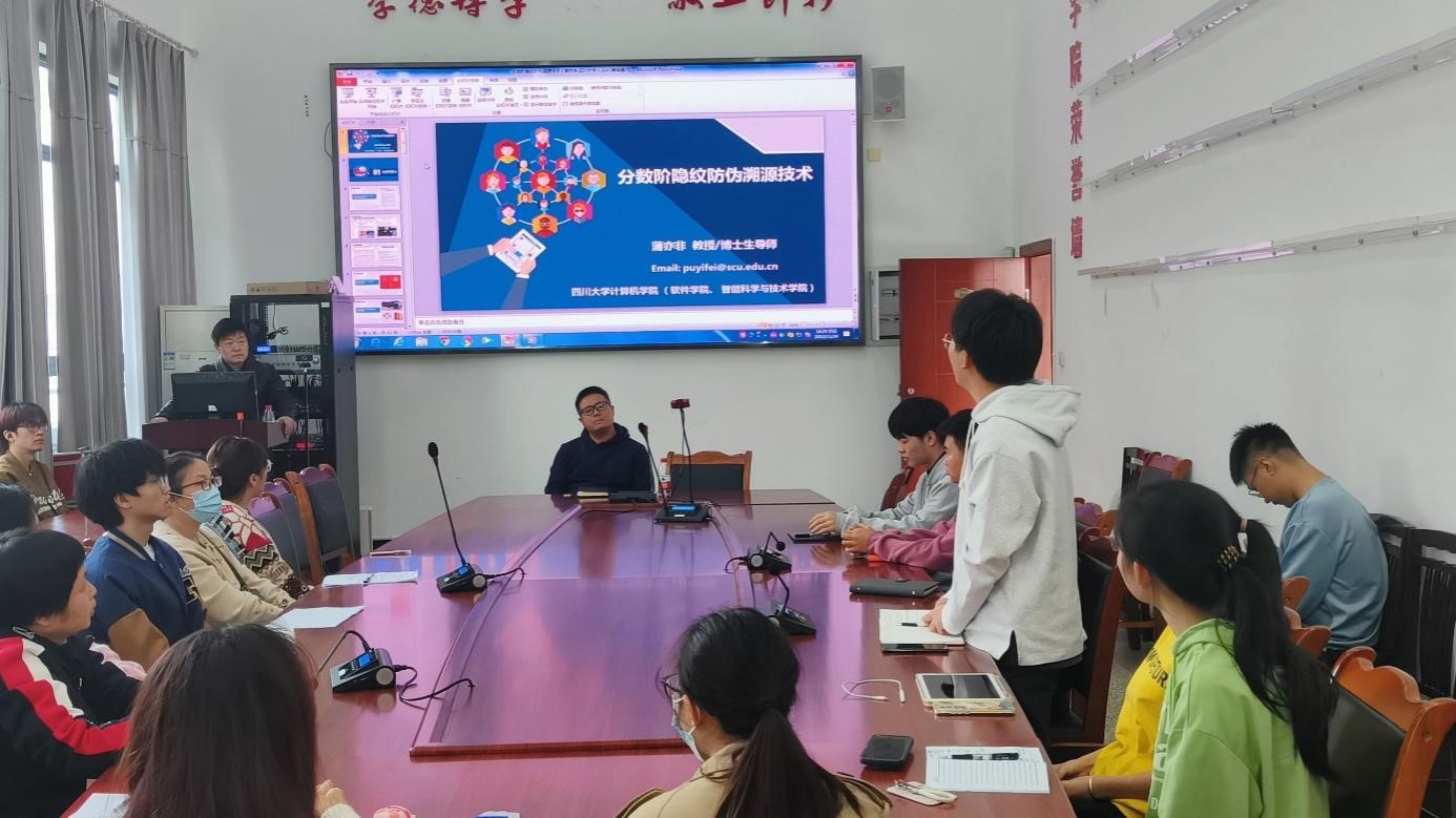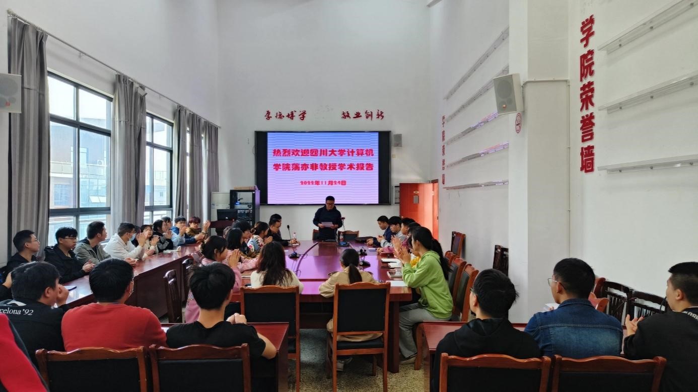 本网讯(文/王业鑫 图/邝园星)为了给同学们拓宽专业知识面,提高专业知识水平,11月24日下午一点,电子信息与人工智能学院在特教C栋501召开了专研学术讲座。本次讲座邀请到了四川省千人创新人才、四川省科技创新创业领军人物、第十一批四川省学术和技术带头人后备人选、四川大学计算机学院人工智能系教授、博士生导师蒲亦非,电子信息与人工智能学院副院长黄果主持本次讲座,陈庆利、石战战两位老师以及19、20、21级部分同学共同参与。