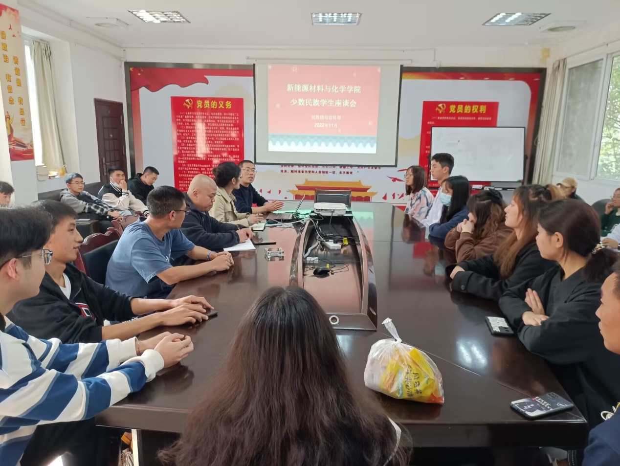 会议初始,少数民族同学们领到了学院专门为他们准备的慰问品,并收到了老师们对彝族同学们的彝族新年祝福。接着,各位少数民族同学依次分享了自己的家乡和民族风俗,交流了专业学习和生活习惯等方面遇到的困难和问题。三位老师结合实际情况,耐心解答,针对具体问题,给出具体的解决方案,希望他们对自己的大学生活能有一个清晰的规划,认真学习,积极参加各种活动,提高自己的综合能力。最后,孙国峰总结到各族人民一条心,不论什么民族,我们都是中华民族,各个民族兄弟姐妹手牵手,心连心,共同铸就和谐团结的华夏。