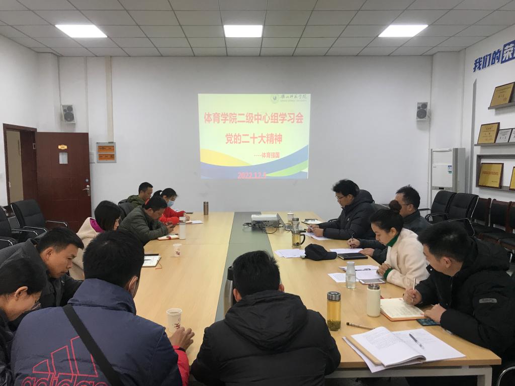 本网讯(文、图/熊仪)12月5日,体育学院在会议室召开了二级中心组(扩大)会,集中学习党的二十大精神。受卡塔尔世界杯决赛波胆预测 党委委托,党委组织部副部长周琴列席会议,体育学院党委委员、纪委委员、支部书记、专业负责人、科级干部参加了理论学习。会议由体育学院党委书记钟大勇主持。