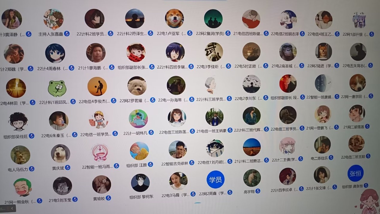 本网讯(文/黄泽静 图/黄泽静、张智诚)为充分发挥团组织教育引导青年团员的功能,让理论教育和实践结合,为党培养高素质人才。12月8日,电子信息与人工智能学院开展了第41期青春团校实践课,按照相关疫情防控要求,本次实践课采用线上会议的方式,第41期团课全体学员参与会议,分团委组织部部长高宇翔、副部长段青松共同参与。分团委组织部干事张嘉鑫主持本次会议。