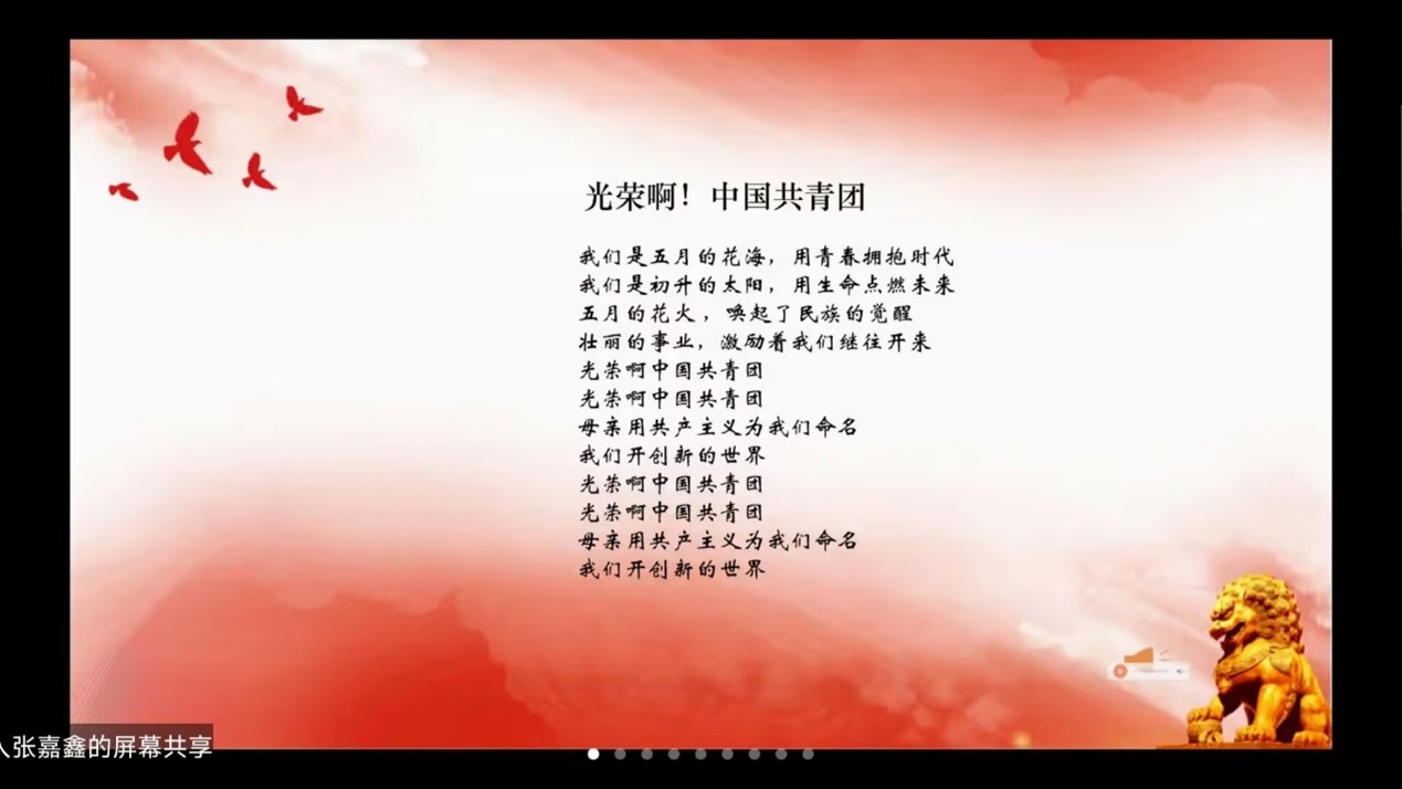 本次实践课程分为三个部分,第一部分全体学员起立开麦共唱团歌。第二部分组织观看红色电影《无负今日》。在观看完影片后,课程来到第三部分学员分享观后感。在交流中学员们表示通过影片领略到了前辈们“无负今日”的嘱托,认识到青年需抓住每一个今天,不负自己、不负时光、脚踏实地、认真努力创造美好未来。会议最后张嘉鑫对会议内容进行了总结,高宇翔和段青松向学员们强调了团课笔记的整理以及结课考试的相关安排。