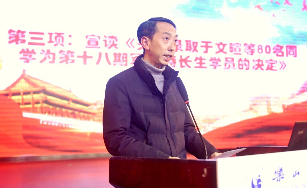 党委学生工作部部长黄显刚宣读《关于录取于文喧等80名同学为第十八期军事特长生学员的决定》