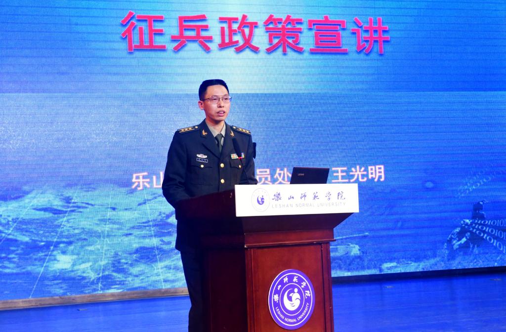 乐山军分区动员处处长王光明作征兵动员政策宣讲