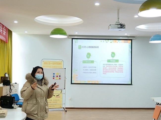 江纳结合学生工作实际强调,作为心理委员,应该在工作中精准定位,积极疏导,成为健康心灵的“阳光导师”。她从大学生心理健康的标准、心理健康对大学生的意义、大学生心理特点与常见问题等四个方面对大家进行培训,结合同学们日常生活中的典型案例,引导大家进行深入剖析。