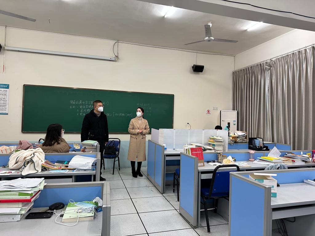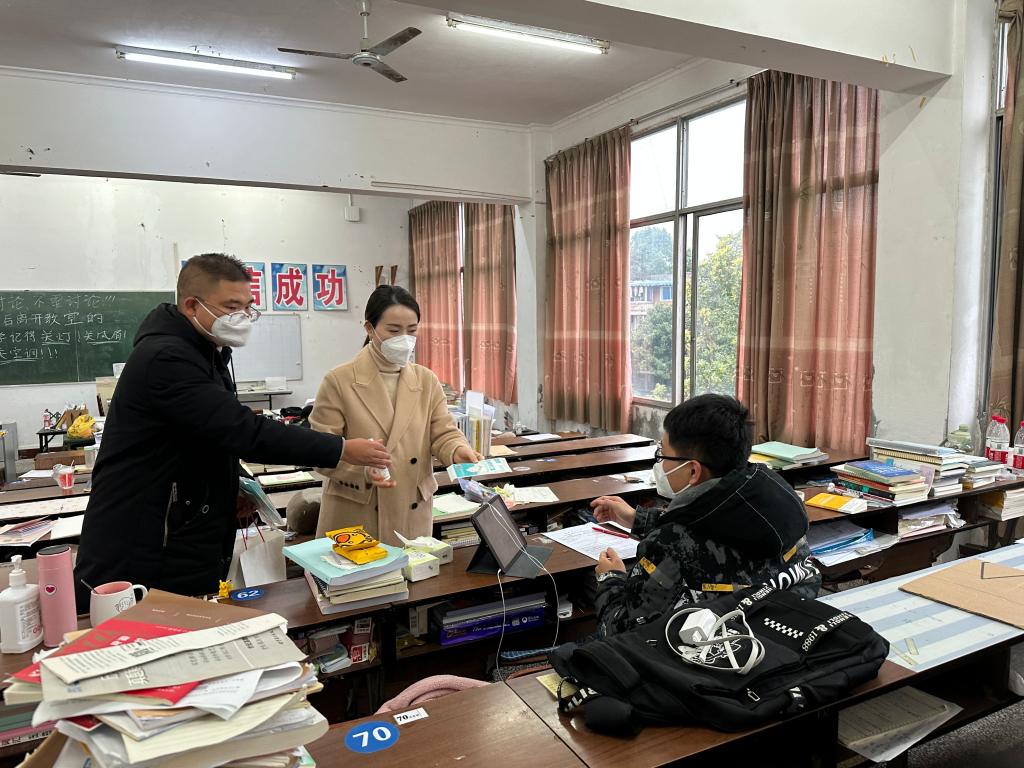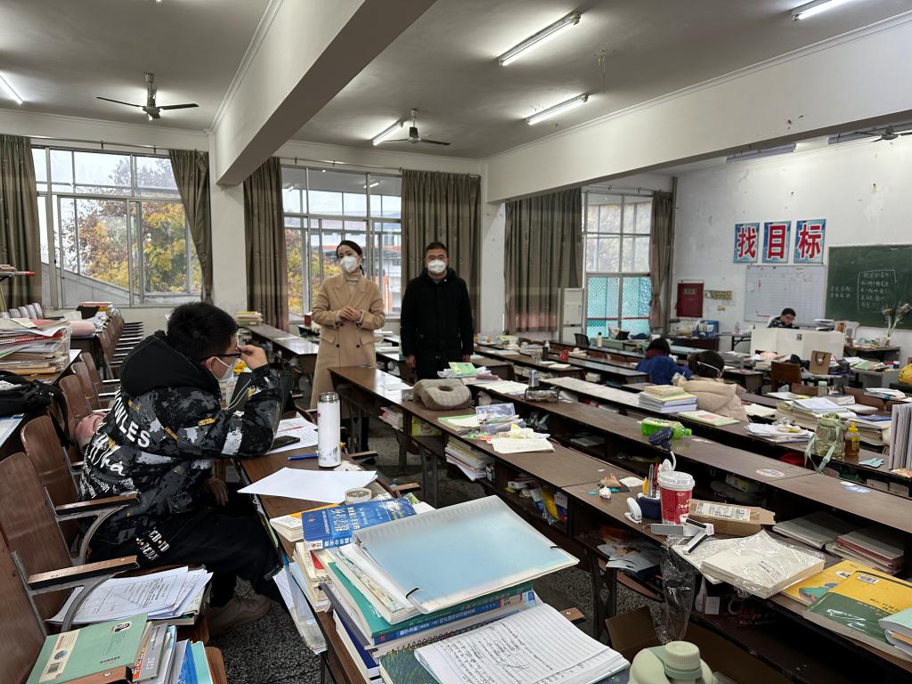 本网讯(文/雷浩 图/陈盈舟、曹琳)时下正值寒风凛冽的时节,恰逢疫情特殊时期,全国硕士研究生入学考试在即,为了帮助考研学子缓解备考压力、减轻疫情恐慌,坚定考研信心,12月19日,数理学院领导老师分别前往旷怡楼一教三阶、实训楼走访慰问考研学子。学院党委副书记兼纪委书记左莉、学生科长陈盈舟和毕业班辅导员曹琳参与本次活动,为学院考研学子送去冬日的温暖祝福。