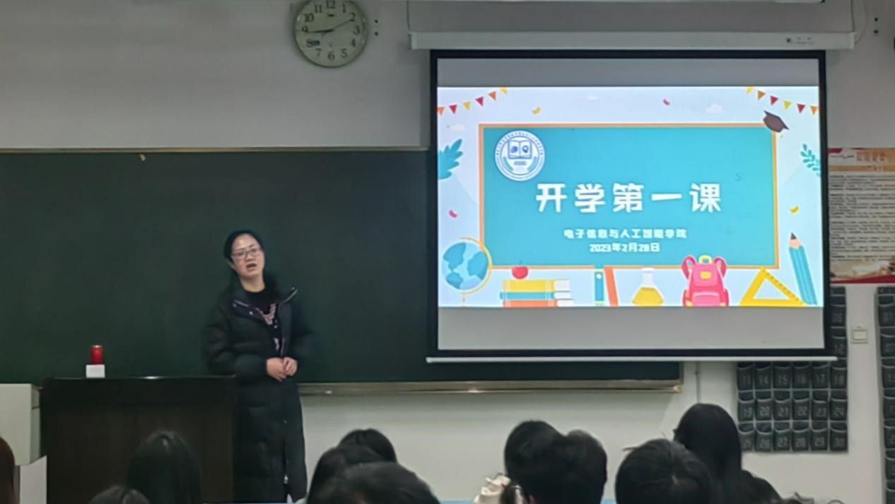 本网讯(文/文钟 图/邝园星、王业鑫)2月28日至3月3日,电智学院各年级各班相继开展了“开学第一课”暨2023年春季学期系列教育引导活动,此次活动由学院党委书记蒋强、辅导员谭红梅以及肖苗、胡志慧、陈莉明、杨霞、齐文静等班主任带领学生共同参加。