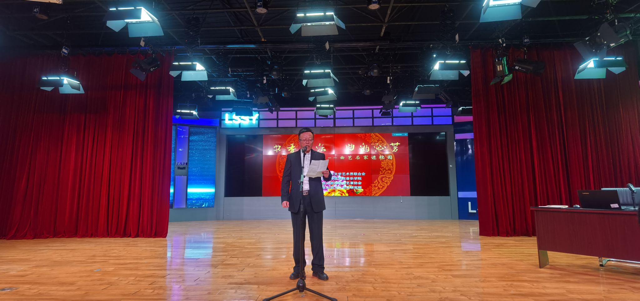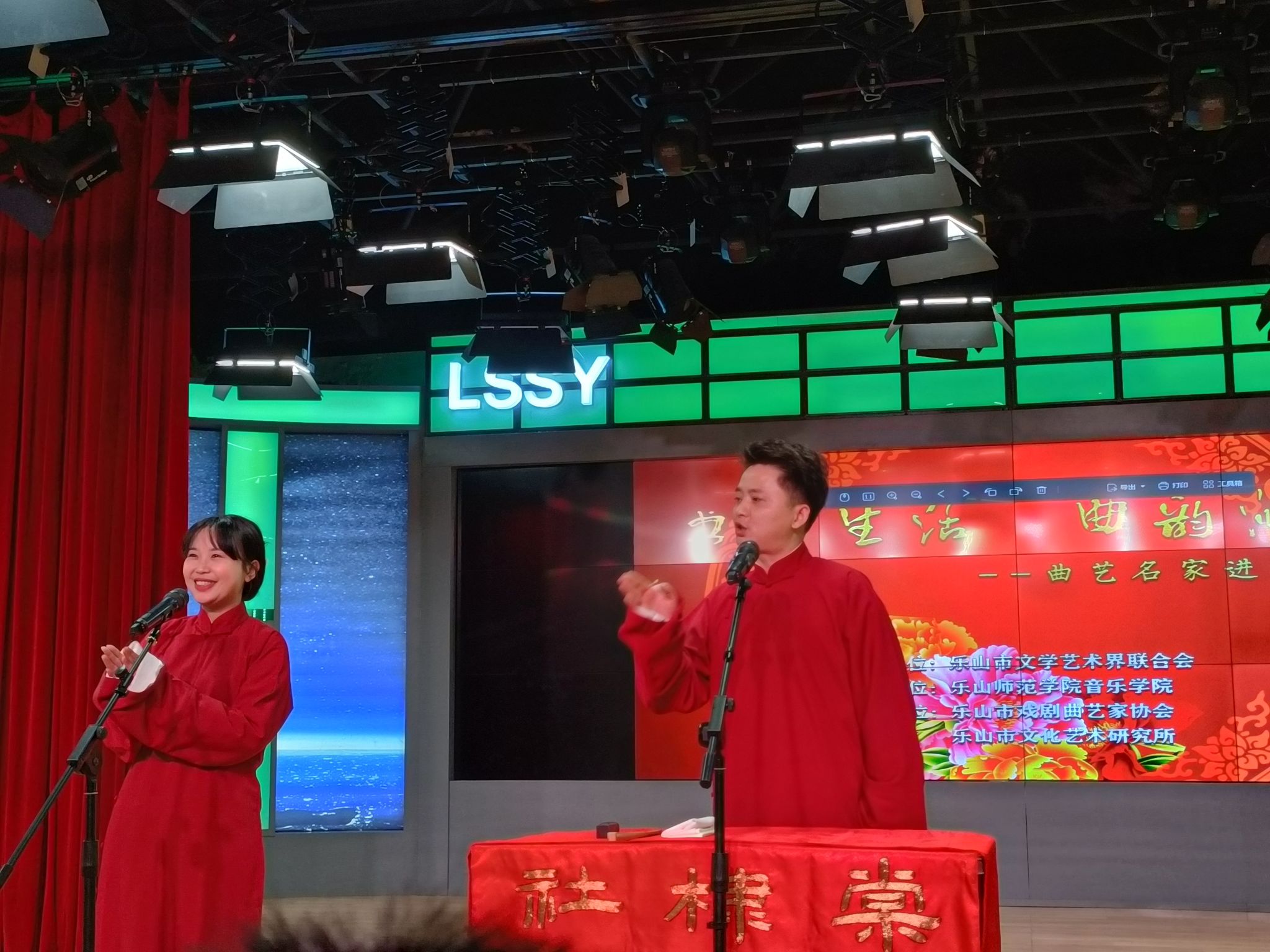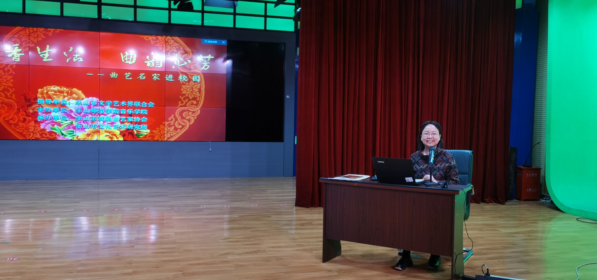讲座由天津市曲艺团国家一级编剧杨妤婕主讲,邀请到河北省京东大鼓代表性传承人、河北省廊坊市曲艺家协会主席姜子龙,山东省东营市曲艺家协会主席、国家一级演员陈建民,山东省日照市曲艺家协会主席,国家一级演员吴少山,河北省心连心艺术团国家二级演员周晓明等相关专家学者和表演艺术家进行现场曲艺节目展示。讲座以曲艺艺术起源、发展、演变与创新作为主要内容,带领师生共同领略了民族说唱艺术词、曲、韵之美,来自河北、山东、乐山等地的曲艺家现场表演了相声、评书、快板等曲艺节目,使师生们充分感受到曲艺艺术的无穷魅力。
