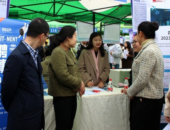 本网讯(文/黄碧莹 吴双 图/罗舒凡)3月17日,我校在北校区桂花广场举办了2023届毕业生春季校园双选会。经济管理学院院长邓健、副院长罗富民、党委副书记丁敏娜、学生管理科科长包天骏、实验教学管理科科长王付军及全体辅导员现场走访用人单位。