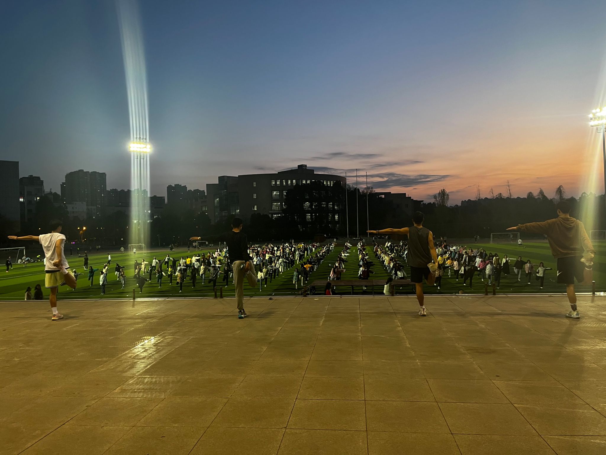 整个活动分为健康跑和集体健身操两个部分。在首先进行的健康跑活动中,同学们在本学院的组织下,以班为单位集体、有序的参加,同学们排成整齐的方队,在体育学院学生的带领下,围绕着跑道进行了2公里的慢跑,在健身跑过程中,各班级始终保持安全距离,同学们之间相互加油、相互鼓励,大家抛掉烦恼、释放压力,享受着健身跑带来快乐。当全体同学都完成健身跑后,体育学院的同学们又带领大家进行肌肉拉伸,为同学们迎接下一项健身活动做好充分的身体准备。