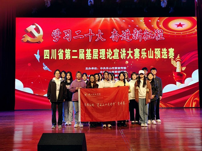 本网讯(文/张红丽 图/夏皓菥)3月21日,四川省第二届基层理论宣讲大赛乐山预选赛在沐川文化分馆举行,为深入学习贯彻党的二十大精神,扎实推进青年大学生理论宣讲能力,马克思主义学院组织“乐师红帆”理论宣讲团20余名成员到沐川开展观摩学习,本次观摩学习活动由我院党委书记李涛老师带队。