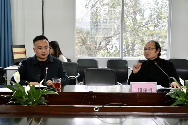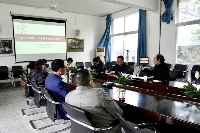 本网讯(文/齐虎 岳江 图/岳江)3月23日,文新学院邀请了范长江纪念馆创馆馆长段瑞明参加新闻学国家一流专业本科专业建设研讨会。研讨会由文新学院副院长杨晓军主持,文新学院院长刘传启、院长助理张德军以及新闻教研室全体专业教师出席了此次会议。