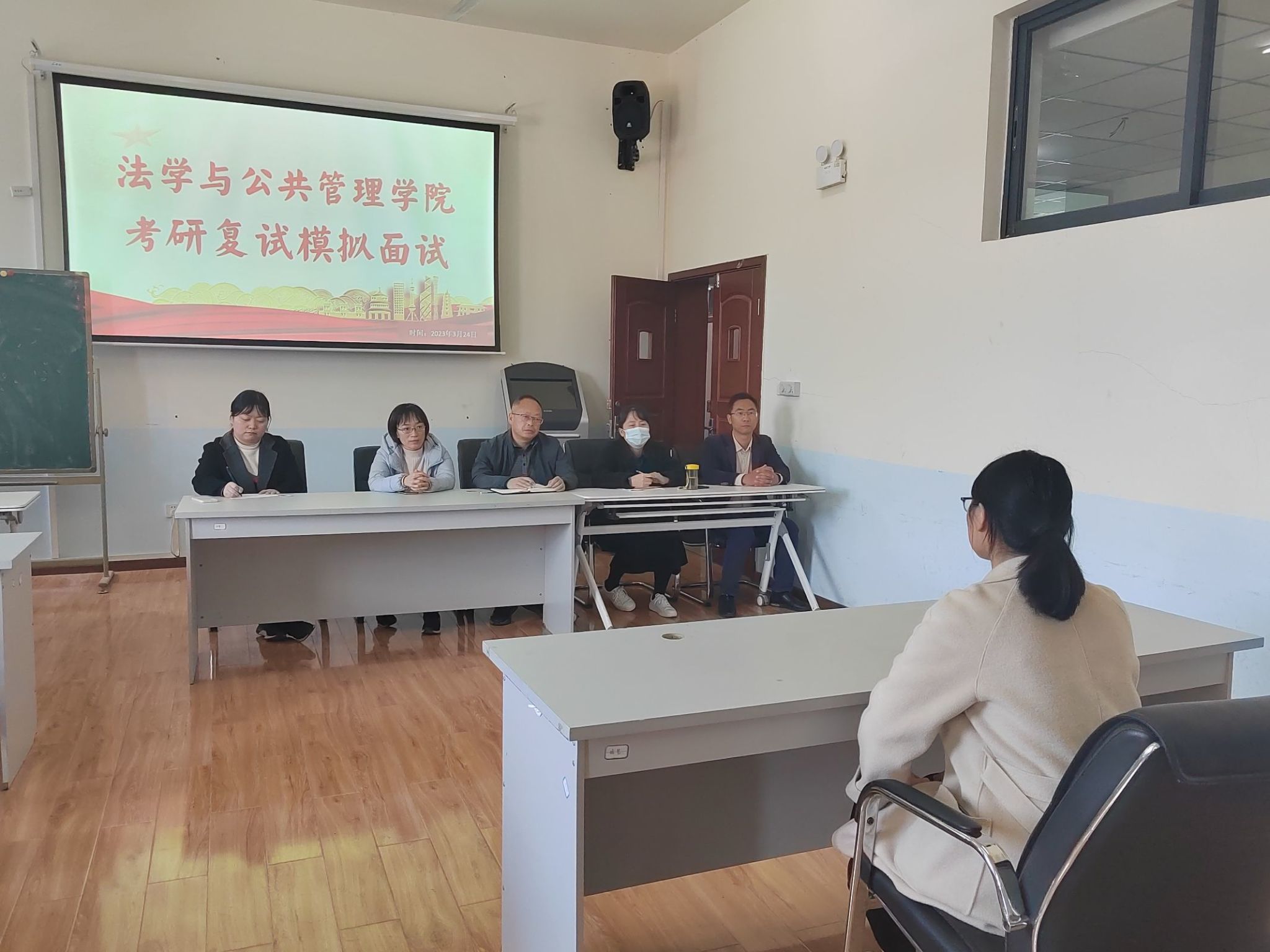 本网讯(文/何叶 图/付孝瑞)为进一步提升学院考研录取率,指导考研学生复试各项工作。3月24日下午13:30,法学与公共管理学院在博雅楼四、五楼会议室和实训楼A511分专业组织开展了考研复试模拟面试。学院党委书记程勇,院长苏祥,副院长刘克稳、赵勇,副书记翟雅媛以及专任教师王怡、肖勇、范薇、魏晓欣、赵勇、刘峰江等参加了此次培训指导。