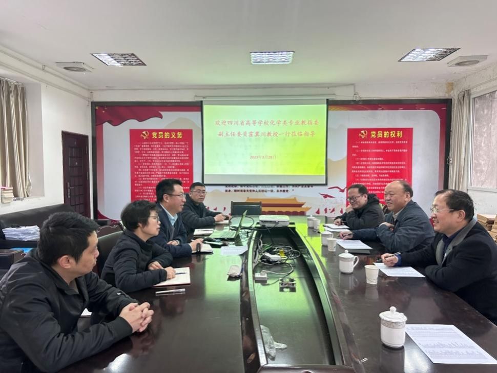 本网讯(文/张海连、图/吴亮)3月29日,西南科技大学的霍冀川教授、索志荣教授、杨海军教授和刘永刚博士等一行受邀来新能源材料与化学学院开展化学师范专业认证和实验室管理工作的指导交流座谈会。学院副院长马旭光、副书记胡涛、化学专业负责人兼教研室主任张海连、实验室主任吴亮、学生科长武拥建等人参加了本次座谈会,会议由马旭光主持。