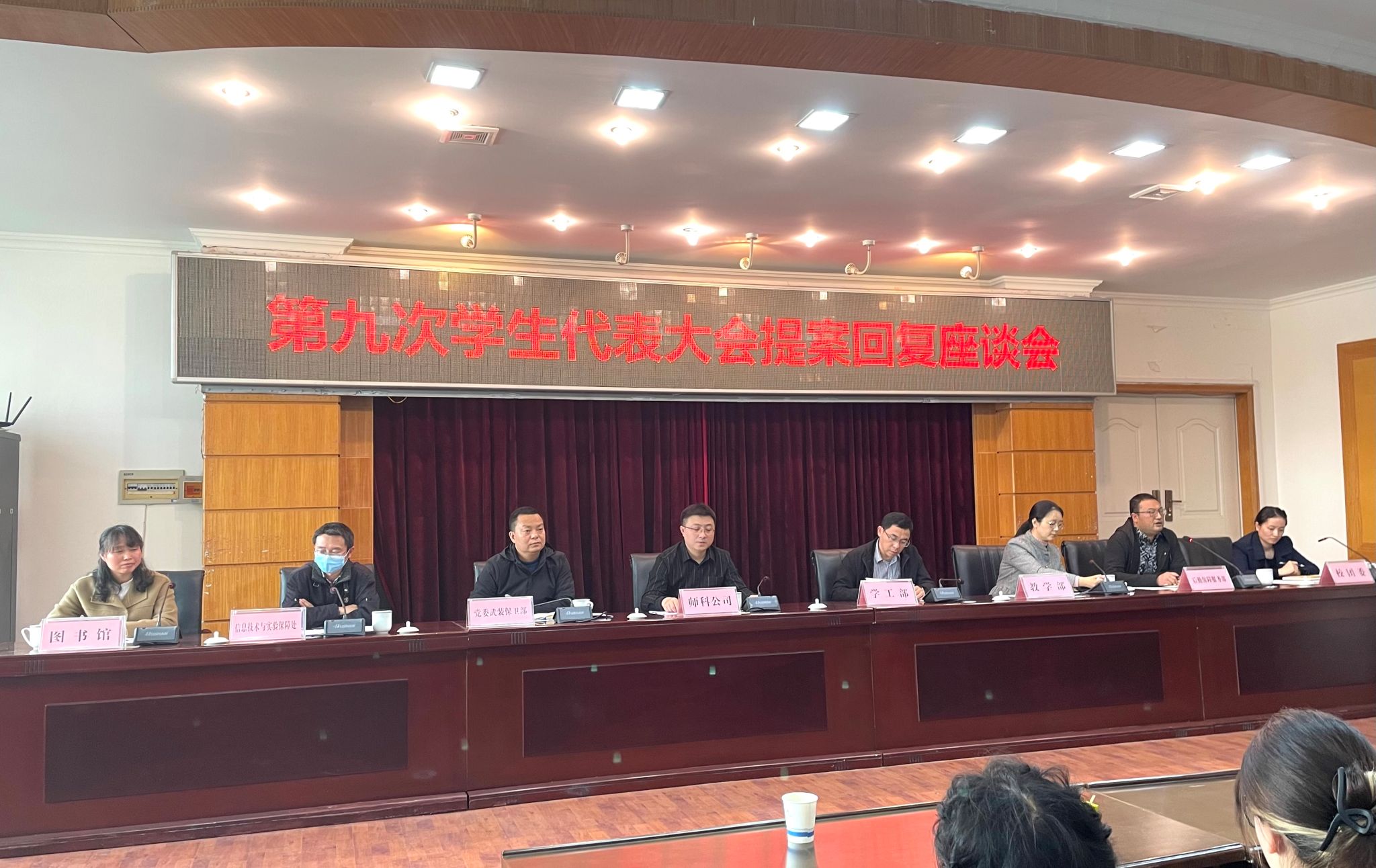 本网讯(文/陈芋伶、刘清燕图/杨菁菁)3月31日下午,校团委组织召开了第九次学生代表大会提案回复座谈会。学工部、武装保卫部、教学部、后勤保障服务部、师科公司等八个职能部门负责人以及各学院的学生代表参会。