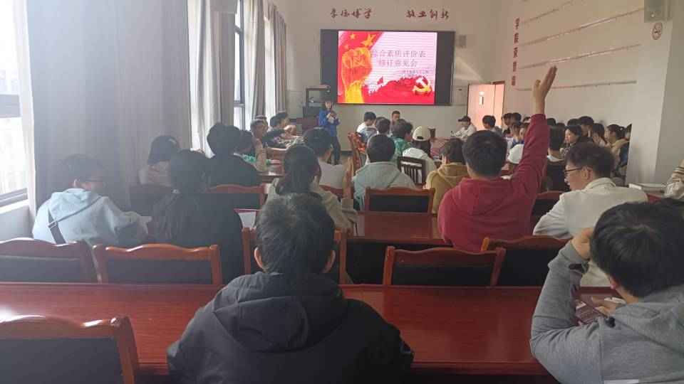 第二是面向各班素拓委员收集同学们关于素质拓宽综合测评表每一项细则意见,进行公开讨论和交流意见,做好记录和修订调整。同时强光平强调各班的素拓委员应认真履行好责任,管理好班级的评分,做到公平公开,仔细把握好每一项细则,严格按照规则办事。