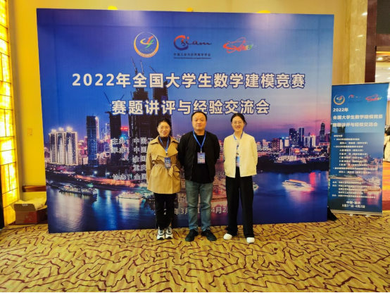 本网讯(文、图/刘高峰)3月31日至4月2日,2022年全国大学生数学建模竞赛赛题讲评与经验交流会在重庆举办,本次会议由中国工业与应用数学学会、全国大学生数学建模竞赛组委会和重庆市工业与应用数学学会联合举办。数理学院数学建模竞赛负责人刘高峰博士与团队成员余孟玲、邹智敏老师参加了交流会。