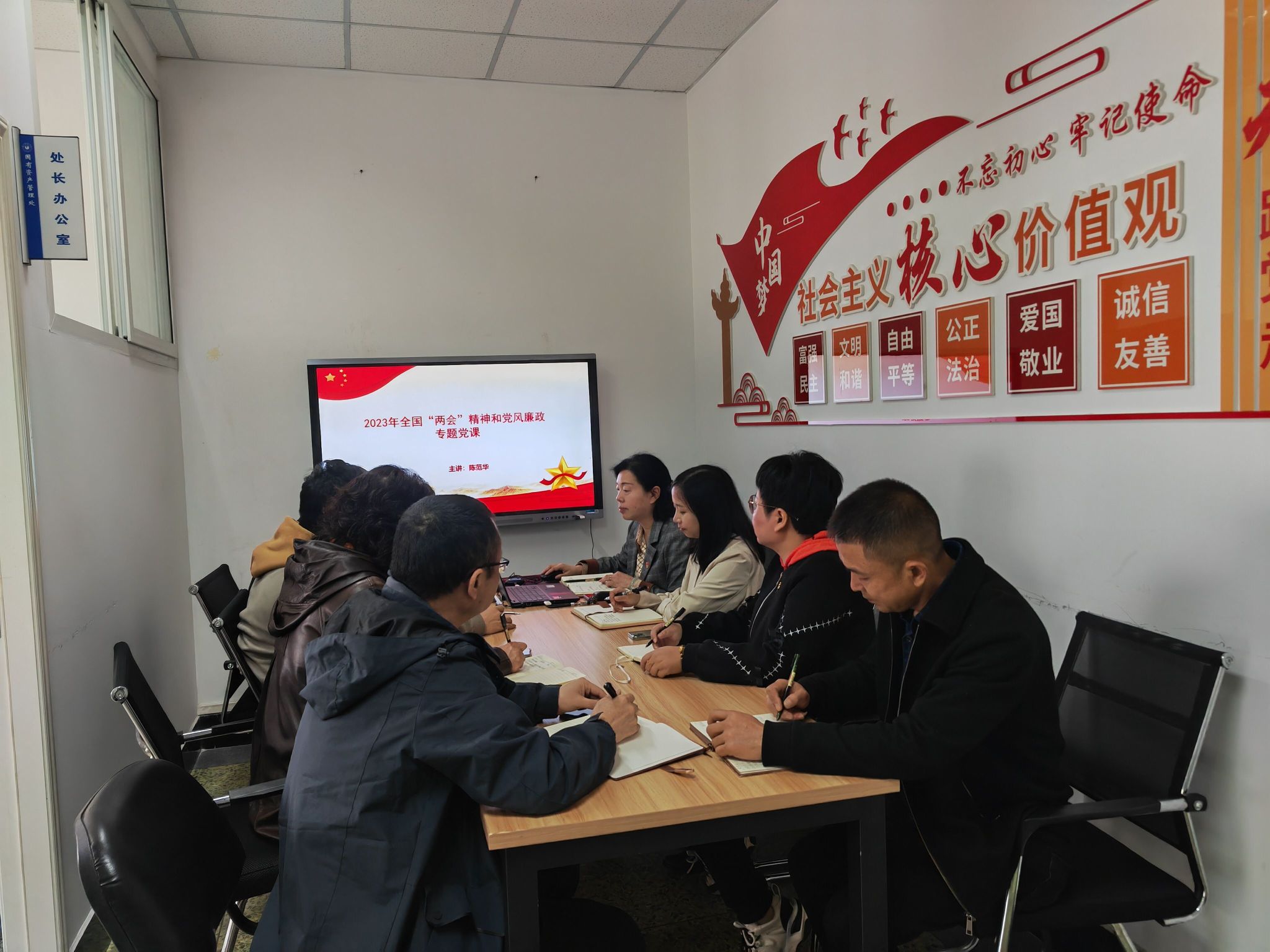 陈范华围绕全国“两会”精神、习近平新时代中国特色社会主义思想和总书记的重要讲话精神,结合国有资产管理处工作职责,分享了两会主要精神、新一届政府工作重点、民生问题、工作作风等主题。