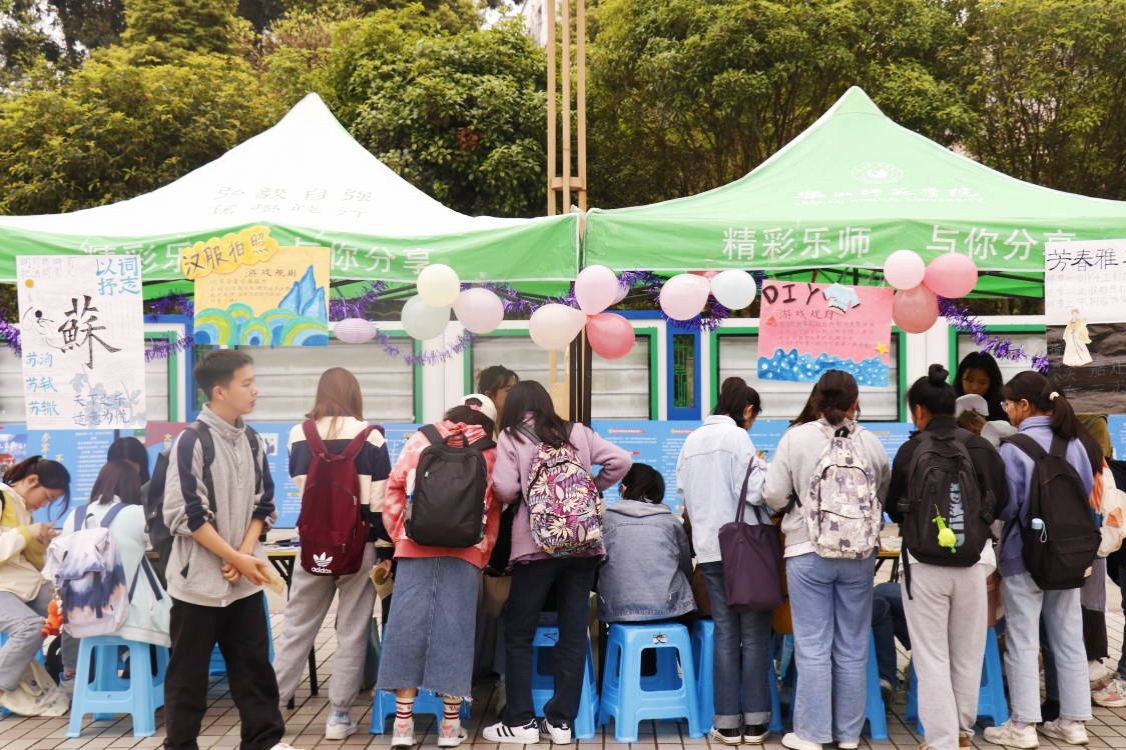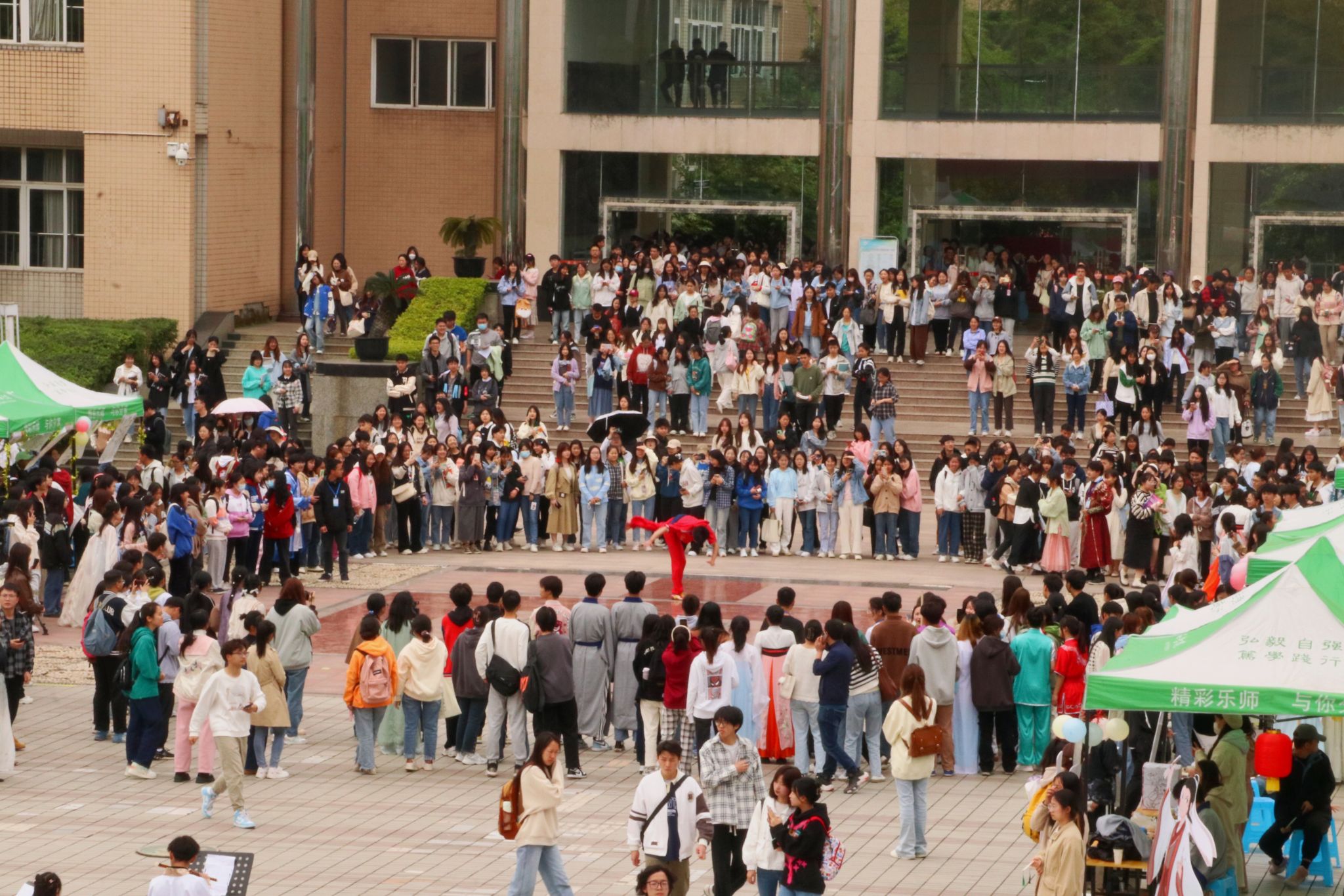 本网讯(文、图/黄鑫垚)为深入学习党的二十大精神,跟随习近平总书记脚步品味“三苏”文化,推进第一课堂和第二课堂深入融合,传承和弘扬中华民族优秀传统文化,增进同学们文化自信。4月7日,由校团委、文新学院、乐山市国学普及基地、经典诵读工作室共同主办,文新学院分团委、学生分会、传媒中心、太阳岛文学社共同承办的“嘉定韵.三苏情”芳春雅集活动在桂花广场成功举办。文新学院党委书记彭杨、文新学院教师代表、辅导员、班主任和全校1000余学生共同参加了本次游园会。