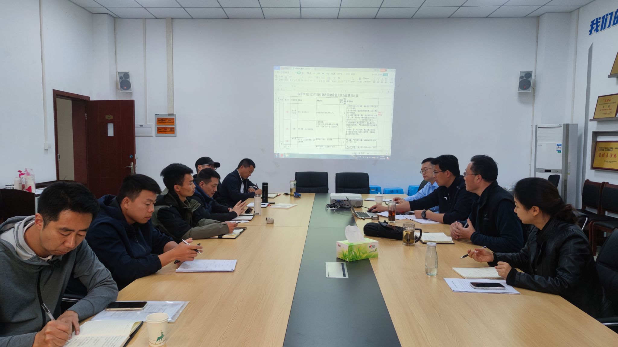 会上,钟大勇首先解读了体育学院2023年岗位廉政风险排查及防范措施统计的具体内容和责任人,并结合体育学院实际进行了党风廉政建设责任的二次分解,把责任落实到了具体的岗位、具体的工作项目。接着组织与会人员对党风廉政建设责任清单任务分解进行了研讨,钟大勇在研讨结束后对师德师风建设、场地管理等进行了强调,要求党员干部要带头遵守党风廉政建设各项规定,在教育教学过程中要大力加强师德师风建设,加强意识形态领域的引领,确保各项责任落到实处。张峰就国有资产管理、招标采购、经费使用及校地合作中存在的风险点进行了强调。