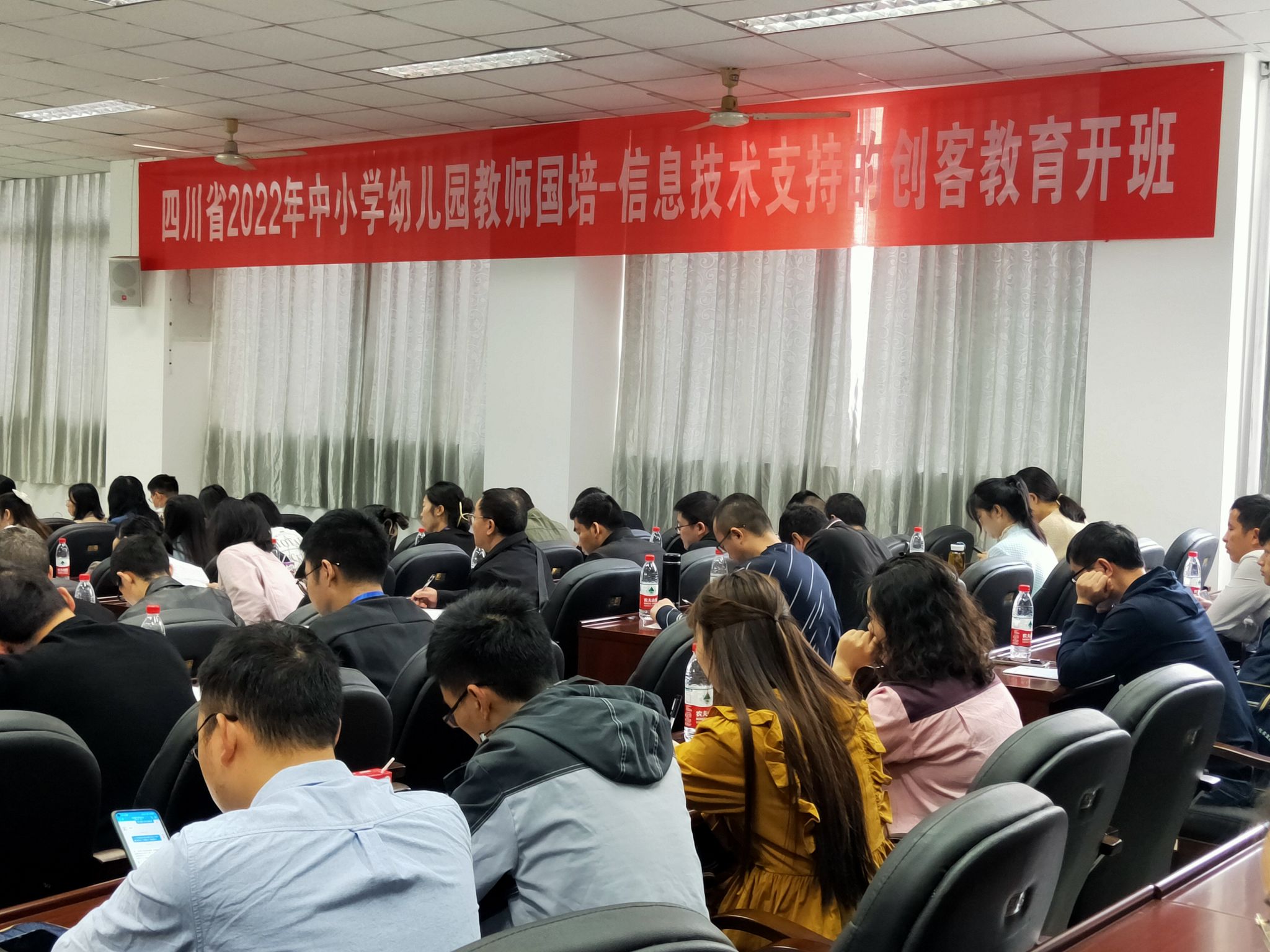 本网讯(文、图/陆奥宇)4月10日,四川省2022年“国培计划”信息技术支持的创客教育一期开班仪式在我校弘毅楼312举行。世界杯葡萄牙vs加纳波胆预测 副校长汪天飞,继续教育学院院长谢艺泉,电子信息与人工智能学院党委书记蒋强、电子信息与人工智能学院院长金澎、学院党委副书记方忠,学院副院长黄果、青海银、电子信息与人工智能学院信息技术教研室主任秦洪英、西南大学附中信息技术中心副主任李九彬、创客教育培训各班主任、志愿者以及来自省内各地市州中小卡塔尔世界杯决赛波胆预测 的100名培训教师参加了开班仪式。