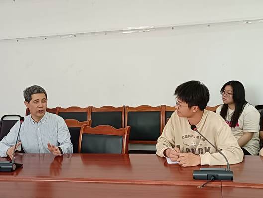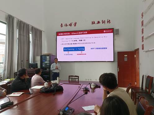 王厚峰教授的讲座拓宽了大家的视野,讲解深入浅出。一个多小时的讲座气氛非常热烈。会后,师生们积极发言,有同学问自然语言处理过程中有没有遇到什么瓶颈?王教授从大模型技术中双向理解与单向生成等角度进行了阐释。金澎院长就王厚峰教授讲座中提到的信仰问题与大家进行了探讨。