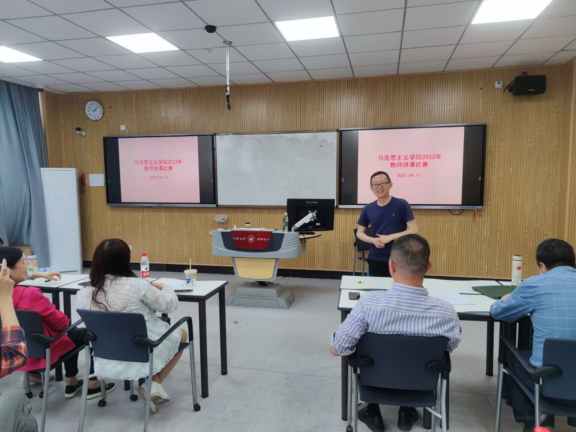 本网讯(文/韩俊 图/马渝)为提升思政课教师教学能力,增进我校思政课教学质量。4月13日,马克思主义学院在行知楼513智慧教室开展教学比赛。来自不同教研室的七位教师参加比赛,比赛由副院长赖伟主持。