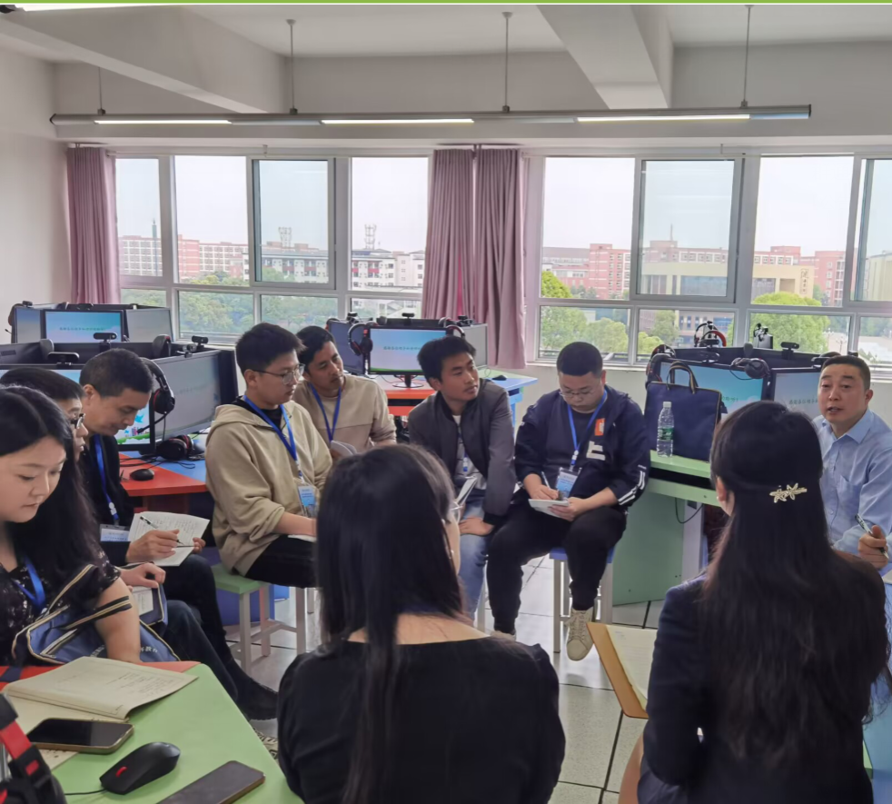 本网讯(文/谭红梅 图/陆奥宇)电子信息与人工智能学院特邀北京大学信息科学技术学院教授、博士生导师、计算语言学研究所所长、中国中文信息学会常务理事王厚峰老师和四川天府新区华阳中学科技教师、全国优秀教师、四川省特级教师、四川省、成都市、天府新区三级名师工作室领衔人、第66届国际科学与工程大奖赛(ISEF)国家队领张晓容老师分别于4.13全天在实训楼B区409、410机房对四川省中小学幼儿园2022年“国培计划”信息技术支持的创客教育一期100名学员第四课开讲。