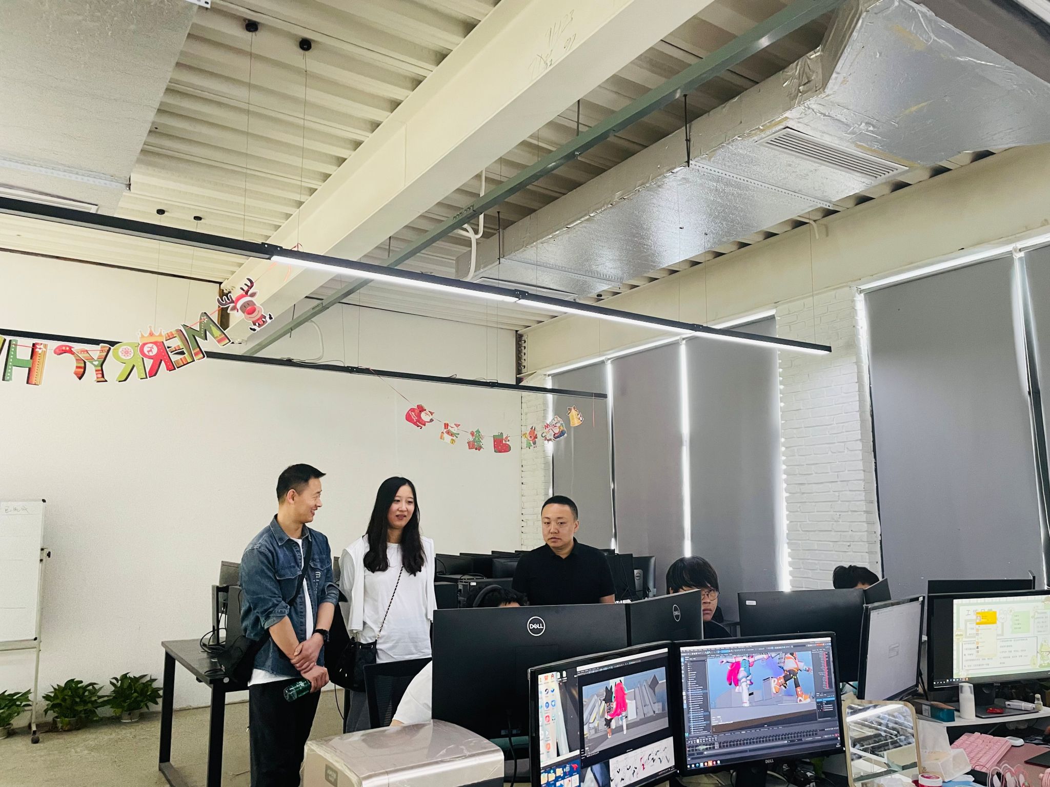 本网讯(文、图/任自林)4月14日,美术与设计学院数字媒体技术、视觉传达设计、环境设计三个专业师生前往成都力方视觉科技有限公司和比格熊动漫科技有限公司进行专业见习,通过企业导师宣讲、参观动漫动画的制作流程、参观公司和项目展厅等帮助学生了解行业发展现状和市场需求,加深对专业的认识,明确职业发展方向。