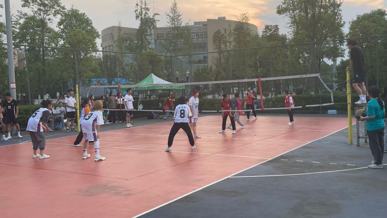 晚上7点整,随着一声哨音的吹响,比赛拉开帷幕。比赛的第一回合,双方打的有来有回,一次次的扣球、接球、发球,双方实力难分高下。教练请求暂停比赛,短暂休息后,我方球员迅速调整状态,最后一鼓作气拿下了第一场比赛的胜利。
