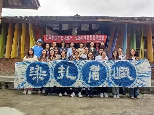 本网讯(文图/刘李)为深入开展学习贯彻习近平新时代中国特色社会主义思想主题教育,4月22日上午,旅游与地理科学学院分党校组织第47期入党积极分子和发展对象前往美术与设计学院王永清老师的非遗文化峨眉扎染传承基地开展了现场教学。