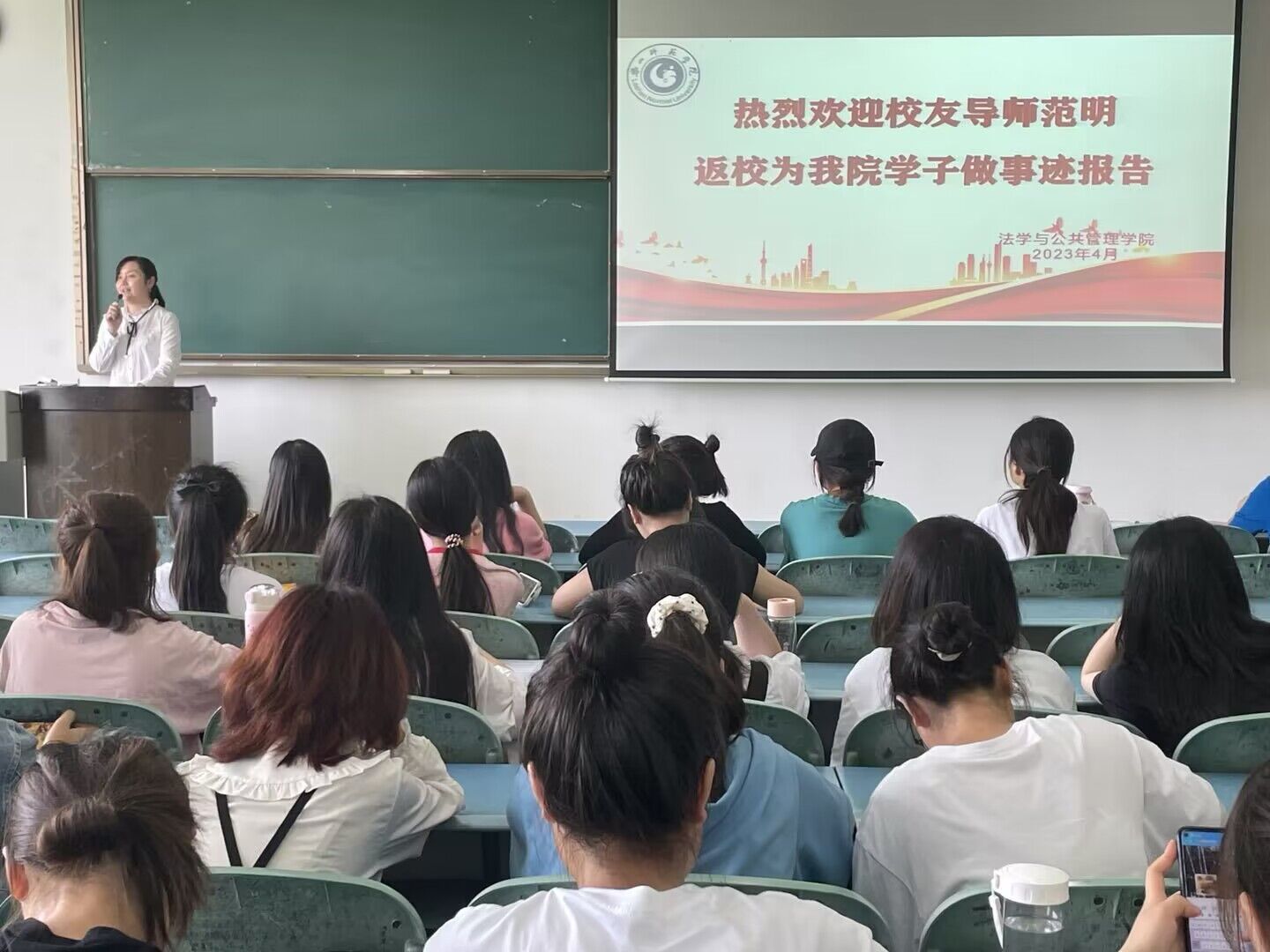 本网讯(文/叶烩 图/朱思宇)为帮助同学们明晰未来发展方向和就业目标,在我校高等教育办学45周年纪念日之际,法学与公共管理学院于4月21日下午三点在行知楼425教室举行了优秀校友交流讲座暨校企招聘活动。法管学院党委副书记翟雅媛、校友导师范明以及部分法管学院学生参加了此次活动,范明担任此次活动的主讲人。