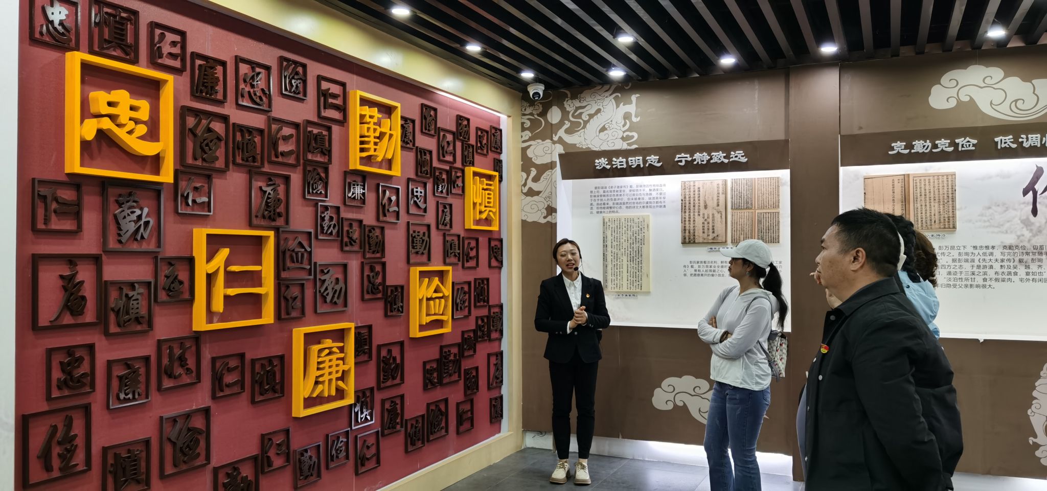 在讲解员的引导下,大家走进彭端淑家风馆,我们可以看到“崇实黜浮、清慎自矢”八个大字,这是彭端淑家风家训的写照。深受家风影响,彭端淑进入仕途后,常以“清慎”自励,做到为官勤政,两袖清风,值得我们纪委和党员干部认真学习。