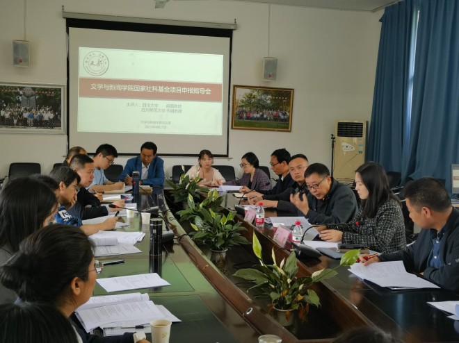 本网讯(文/陈镜颖、图/陈缘缘)4月27日上午,在文新学院会议室进行了2023年国家社科基金项目申报书新一轮的打磨研讨会。本次打磨会特地邀请四川大学文学与新闻学院二级教授、博士生导师阎嘉,四川师范大学文学院教授、博士生导师、副院长毛娟对我校申报项目的老师进行一对一指导。文新学院院长刘传启参加打磨会,副院长杨晓军主持会议。文新学院、马克思主义学院、美术与设计学院等教学院申报项目的老师参加会议。