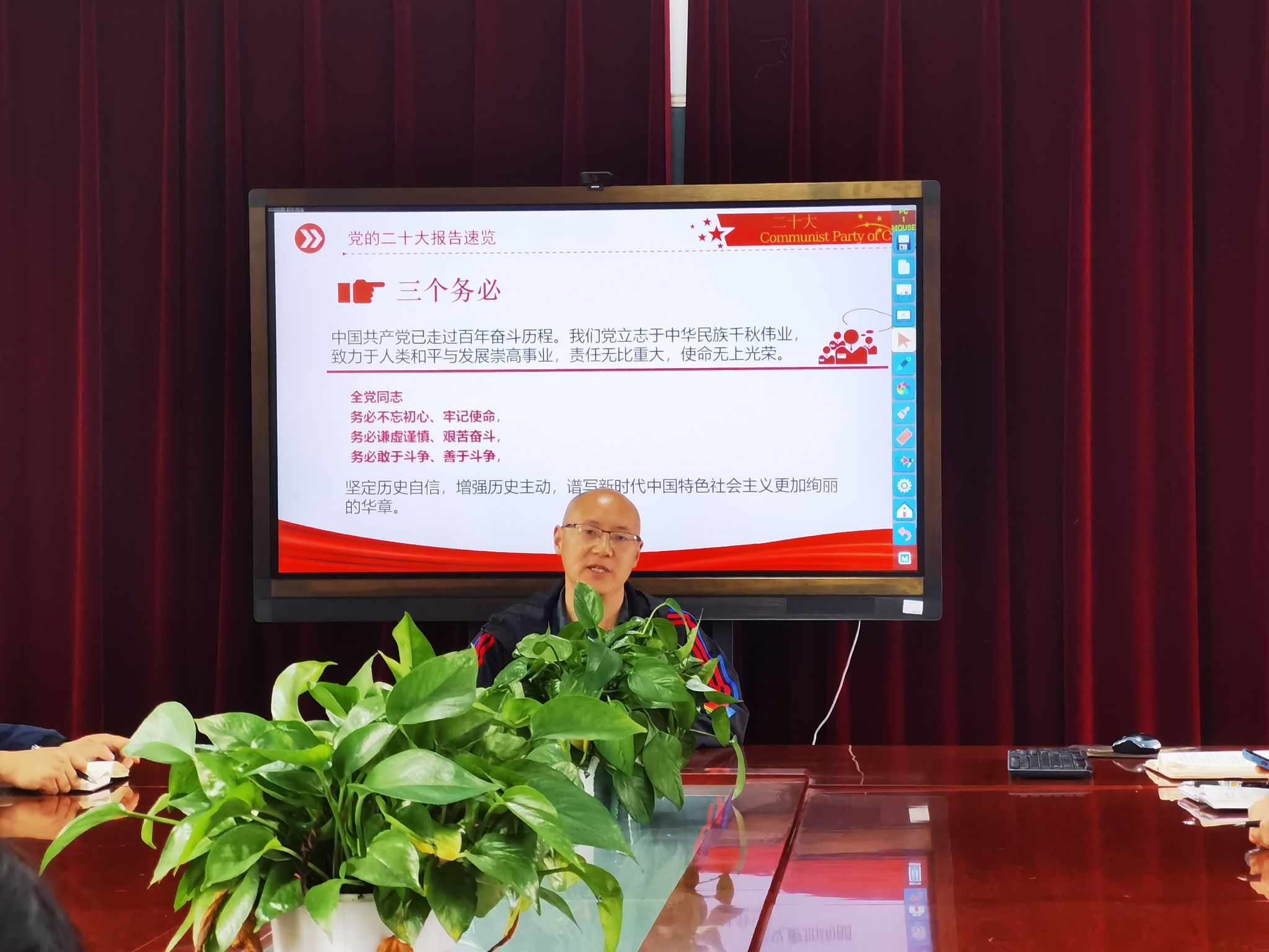 最后,马力强勉励学院的师生党员要落实“三个务必”的精神力量,发扬谦虚谨慎、艰苦奋斗的精神,用奋进的姿态应对各种风险和挑战,为实现中华民族伟大复兴的中国梦贡献力量,在新征程的路上谱写更加绚丽的华章。